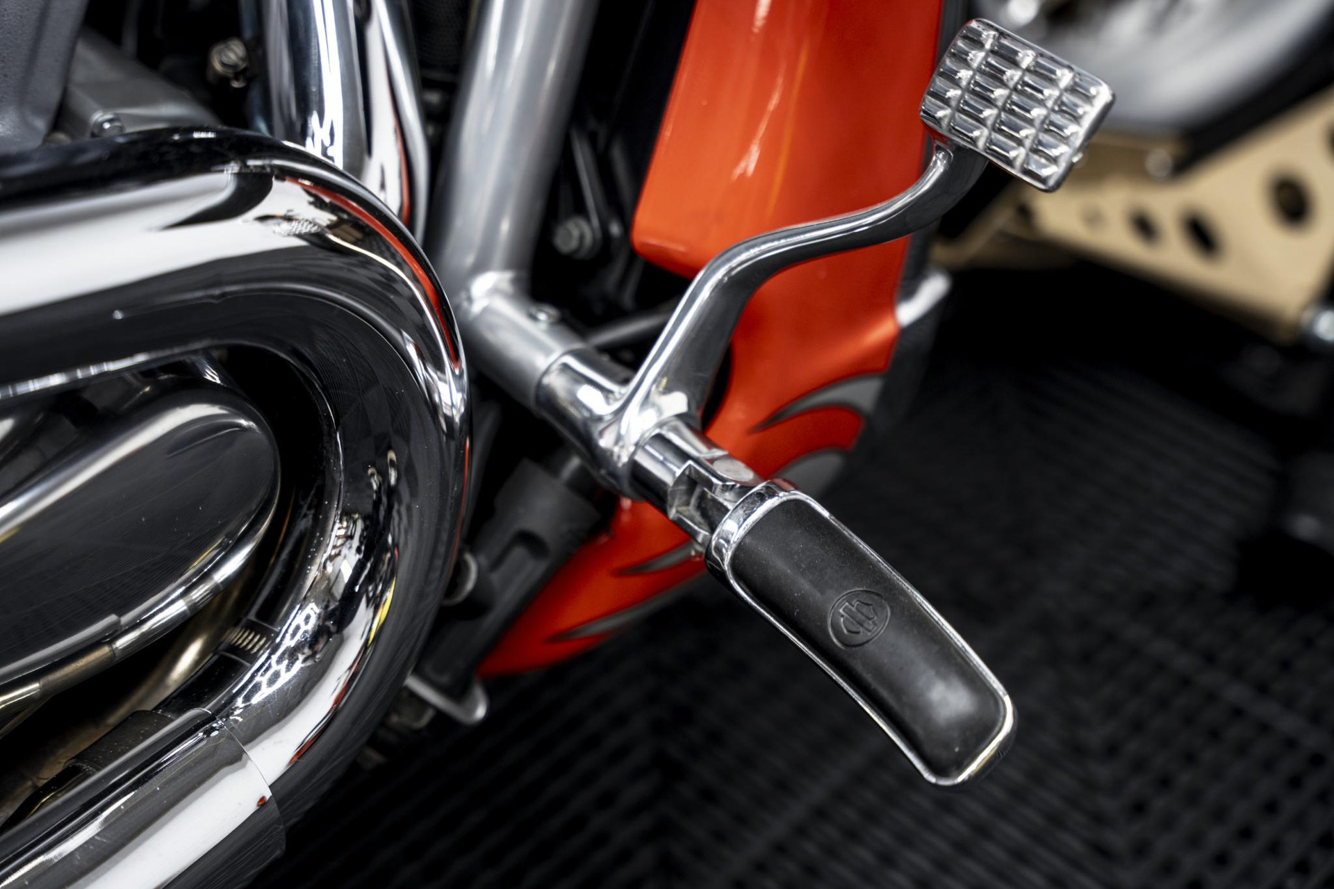 De Night Rod Special onderscheidt zich met zijn agressieve dragster-uitstraling, brede achterband, dubbele schijfremmen en donkere styling met subtiele oranje accenten. Een motor die net zo goed rijdt als hij eruitziet – rauw, stijlvol en indrukwekkend in elk detail.